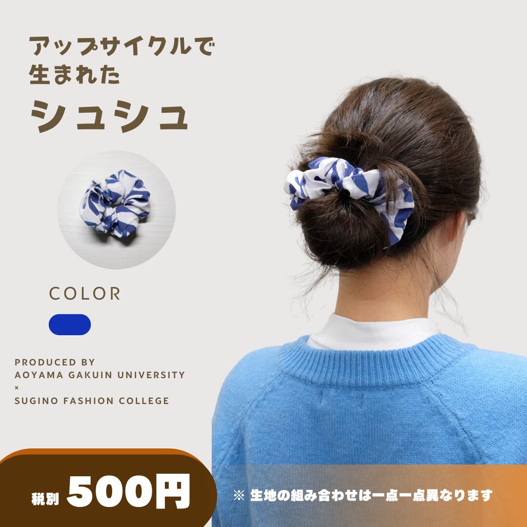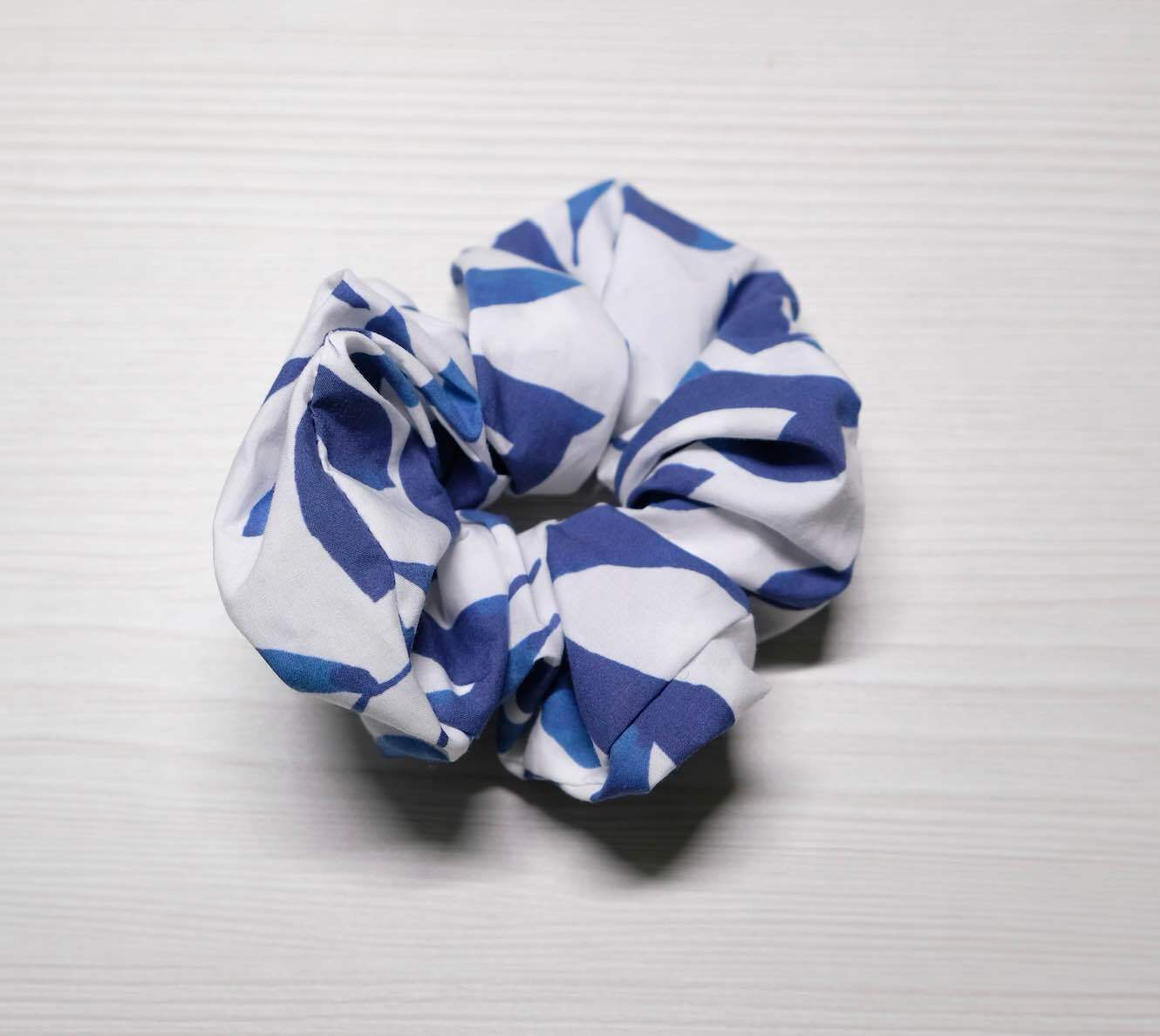 ブルー×ホワイトの柄シュシュ。